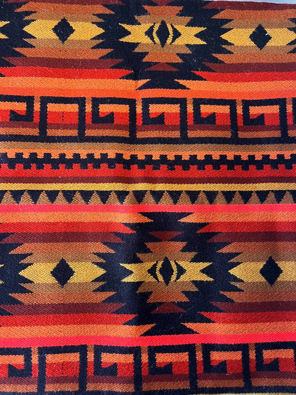 Paño de ceremonia rojo con patrones multicolores del pueblo Peguche en Otavalo, en el norte de Ecuador. 50x160cm. La medida puede variar un poco.