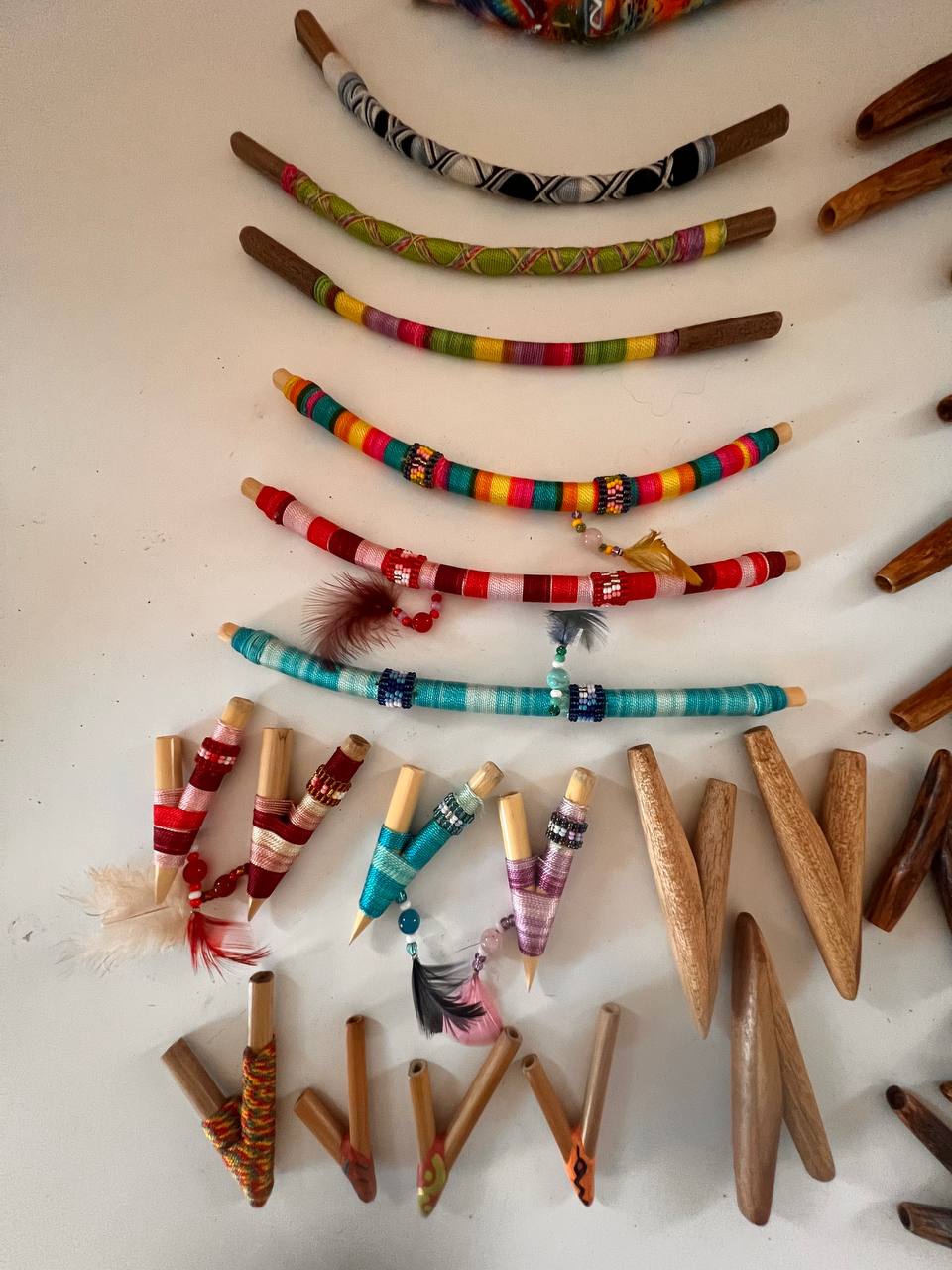 Trabaja con madera desde hace muchos años, creando kuripes, tepis y flautas. Deja que la vibración de la madera hable al crear los instrumentos.