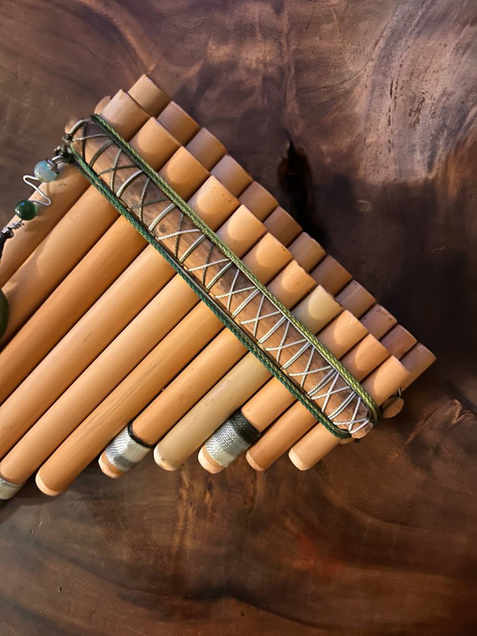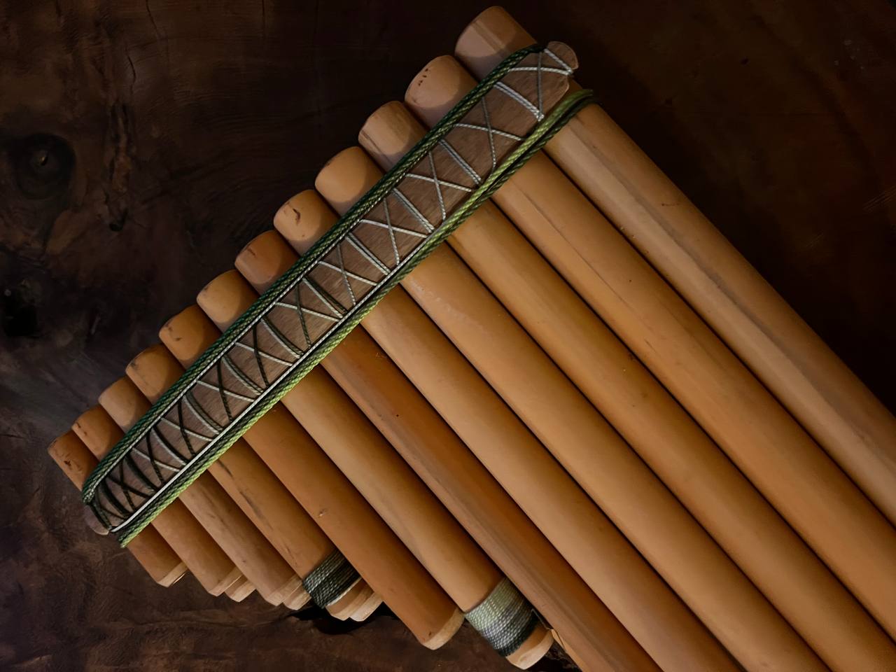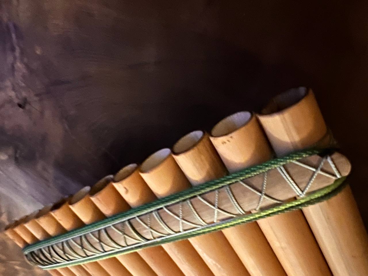 Flauta Zampoña con tubos bolivianos fabricada por Iván Zambrano de Mocoa, Putumayo, Colombia.